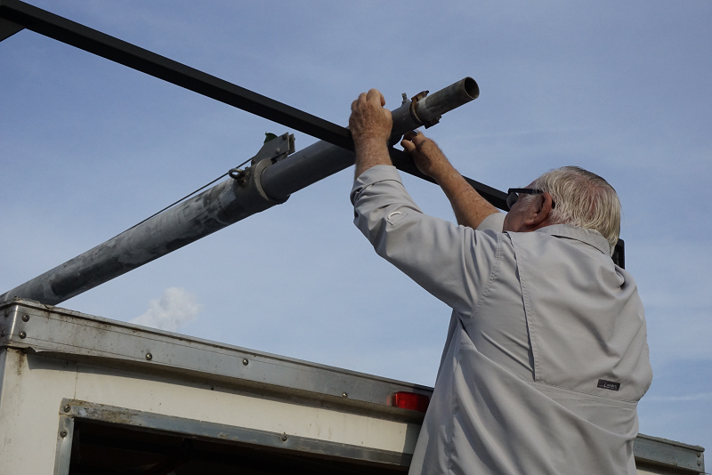 June 5, 2018, Fred brought the trailer to out June club meetiing. This is the first time we have seen the trailer with the new tongue and tower mount & raising assembly. The photos below are what we got to see.